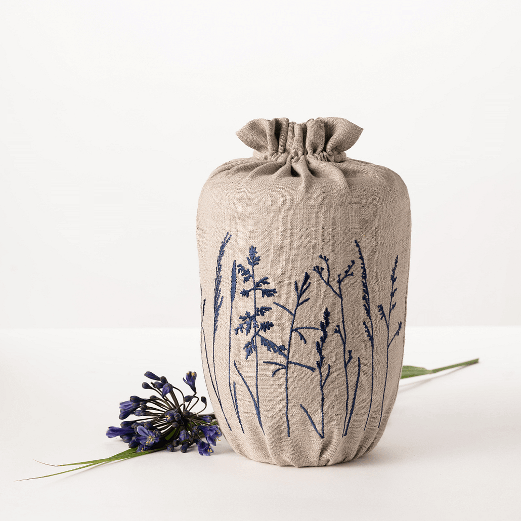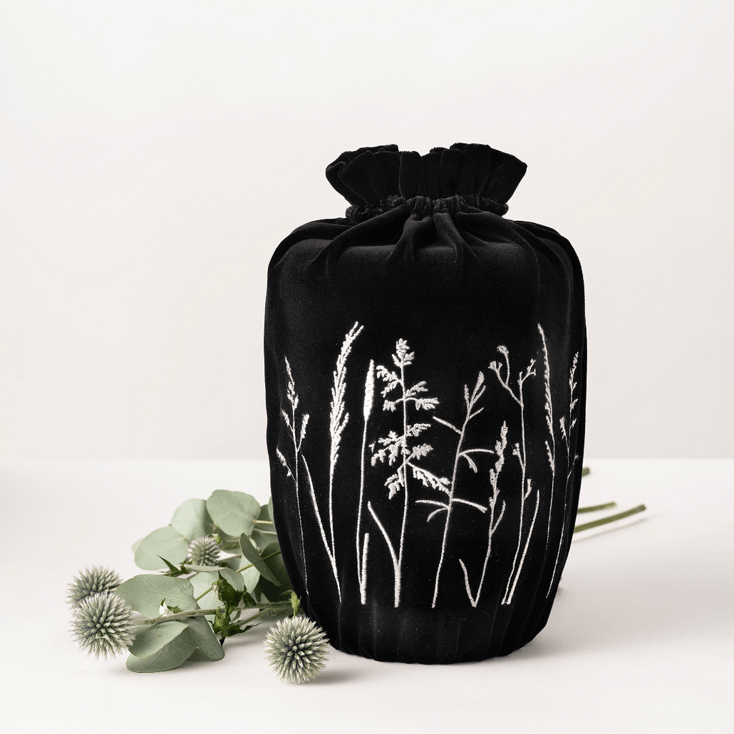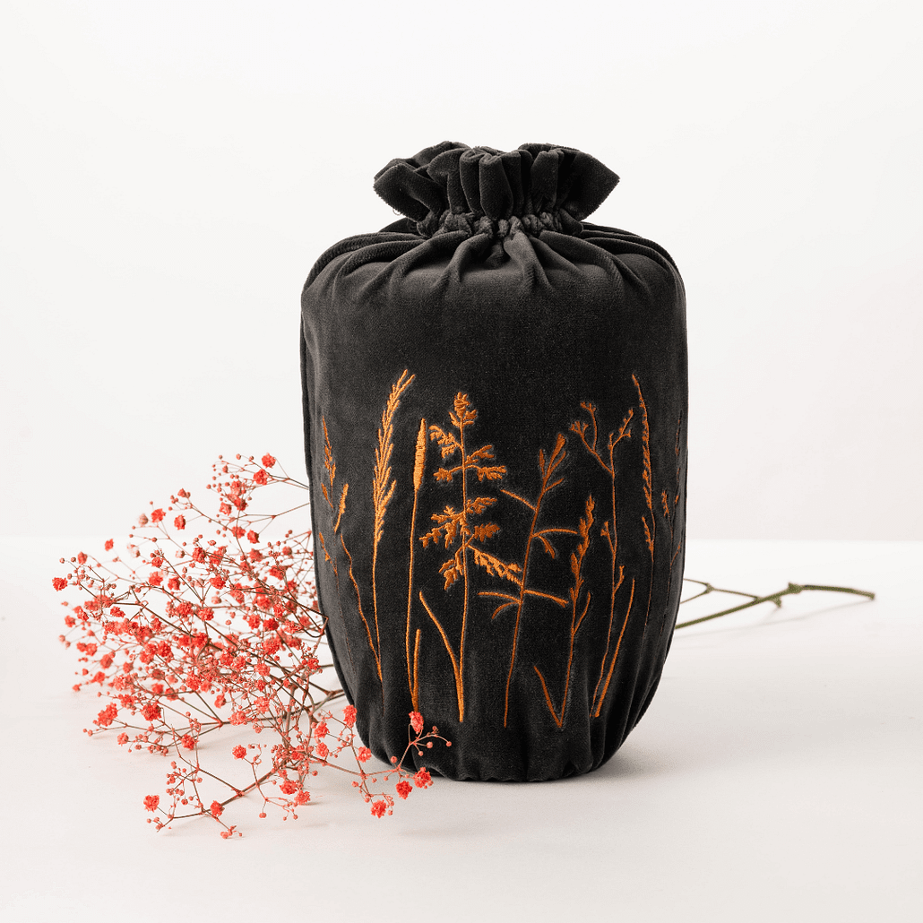 Jede Textile Urne wird einzeln bestickt und mit hohem Anspruch an Qualität und Verarbeitung in Deutschland gefertigt. Für einen angemessenen Abschied.